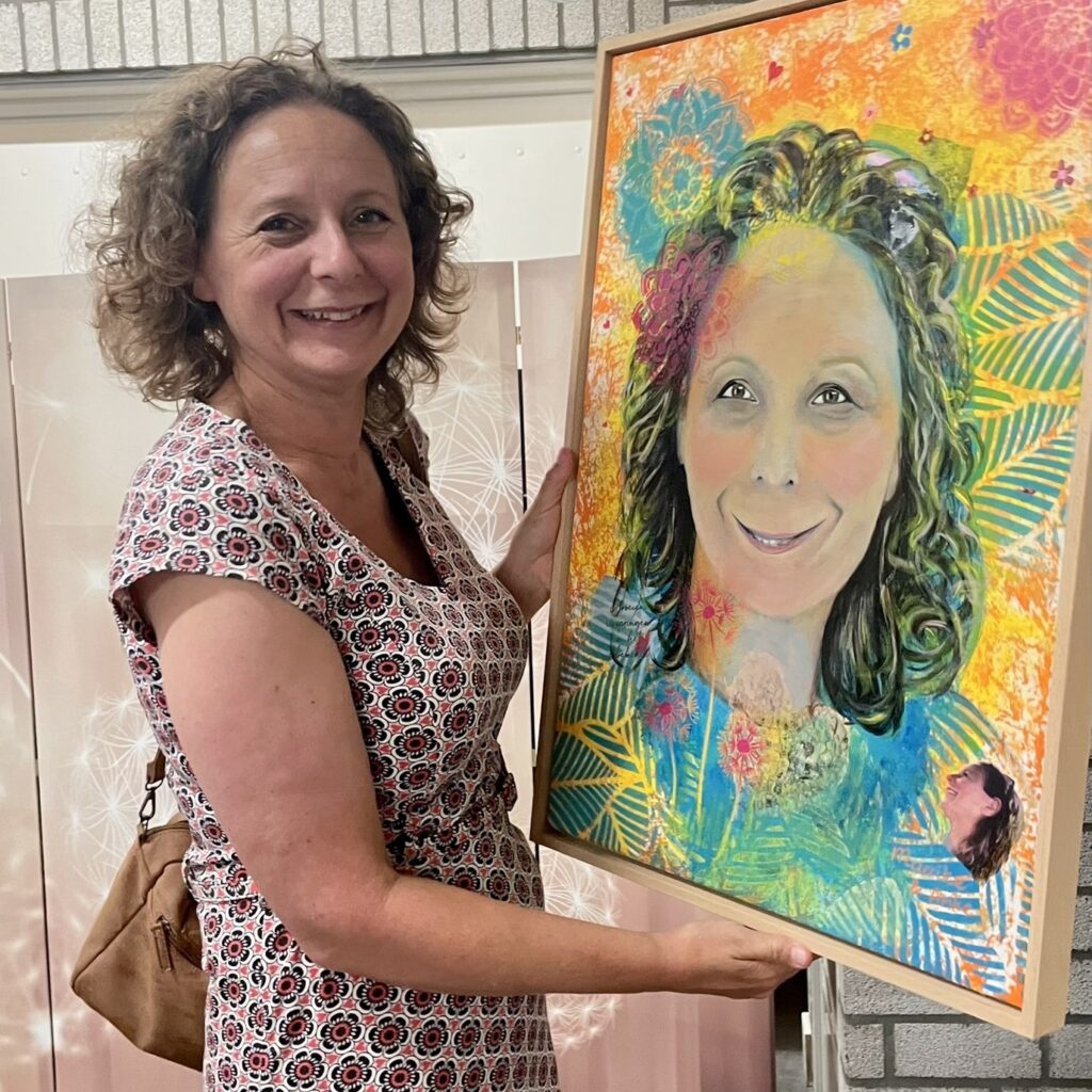 Een doek vol kleur, beweging en gevoel. Een schildering van haar verhaal, recht uit haar hart.